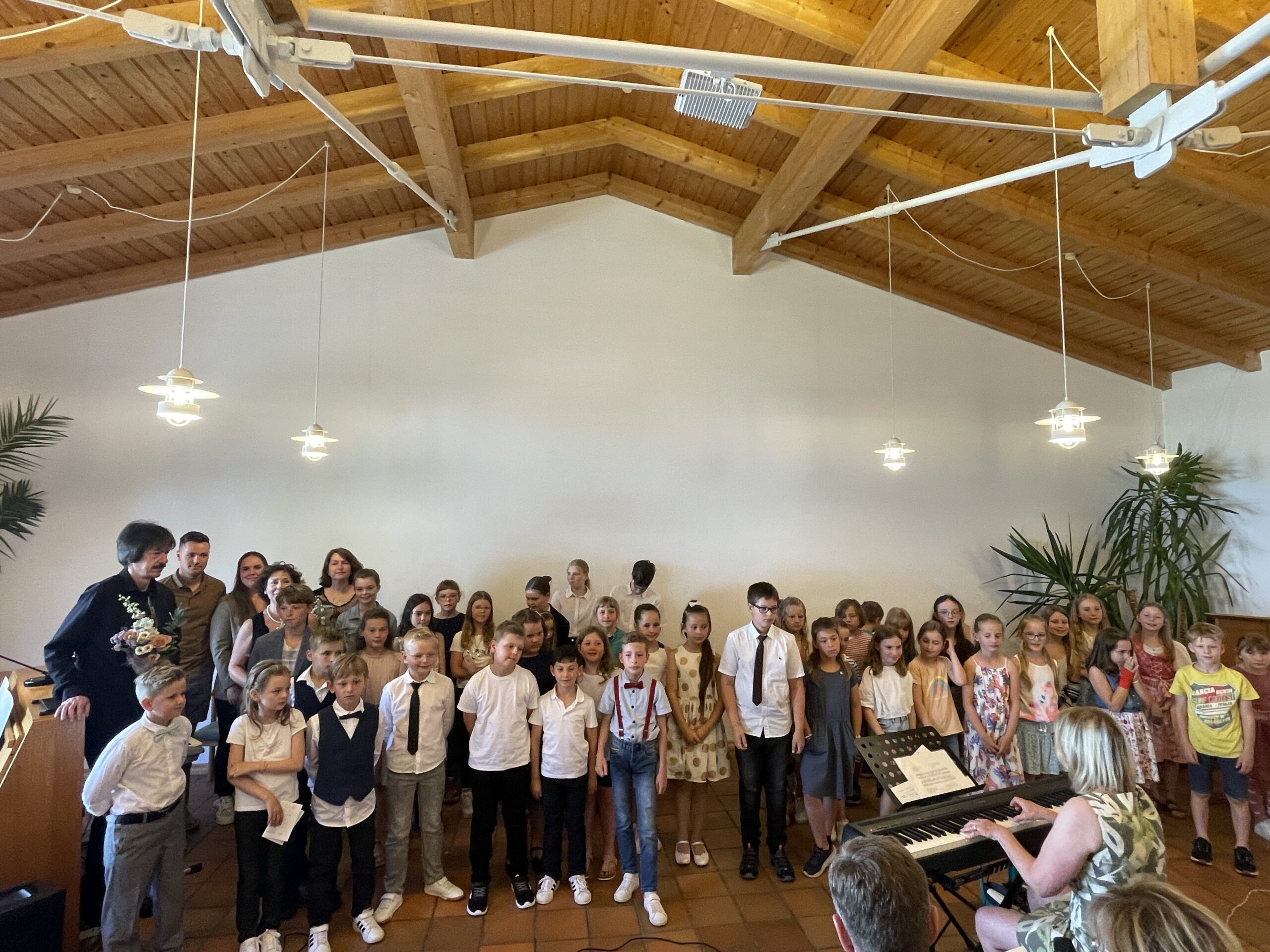 Eine Erfolgsgeschichte feierte kürzlich 20-jähriges Jubiläum. Das Projekt „Musik nach 1“ an der Grund- und Mittelschule Bayerisches Vogtland in Feilitzsch hat in Zusammenarbeit mit der Musikschule des Landkreises Hof schon für viele musikalische Unterrichtsstunden gesorgt. Eine kleine Kostprobe ihres Könnens gaben ca. 50 Schülerinnen und Schüler der Grundschule am Samstag, den 6.7.2024 zum Besten. Zu hören waren vielen unterschiedlichen Beiträgen vom Kinderchor über Gitarren-Ensemble bis hin zum Solobeitrag am Klavier. Auch ehemalihge Schülerinnen und Schüler waren vertreten.