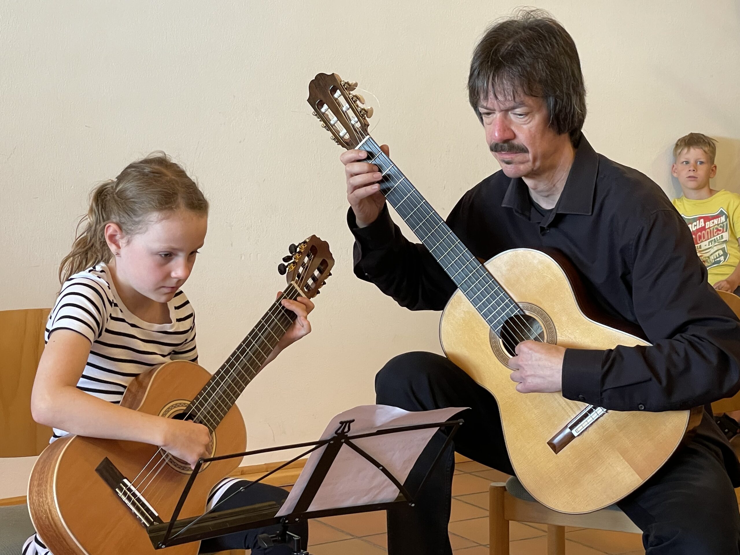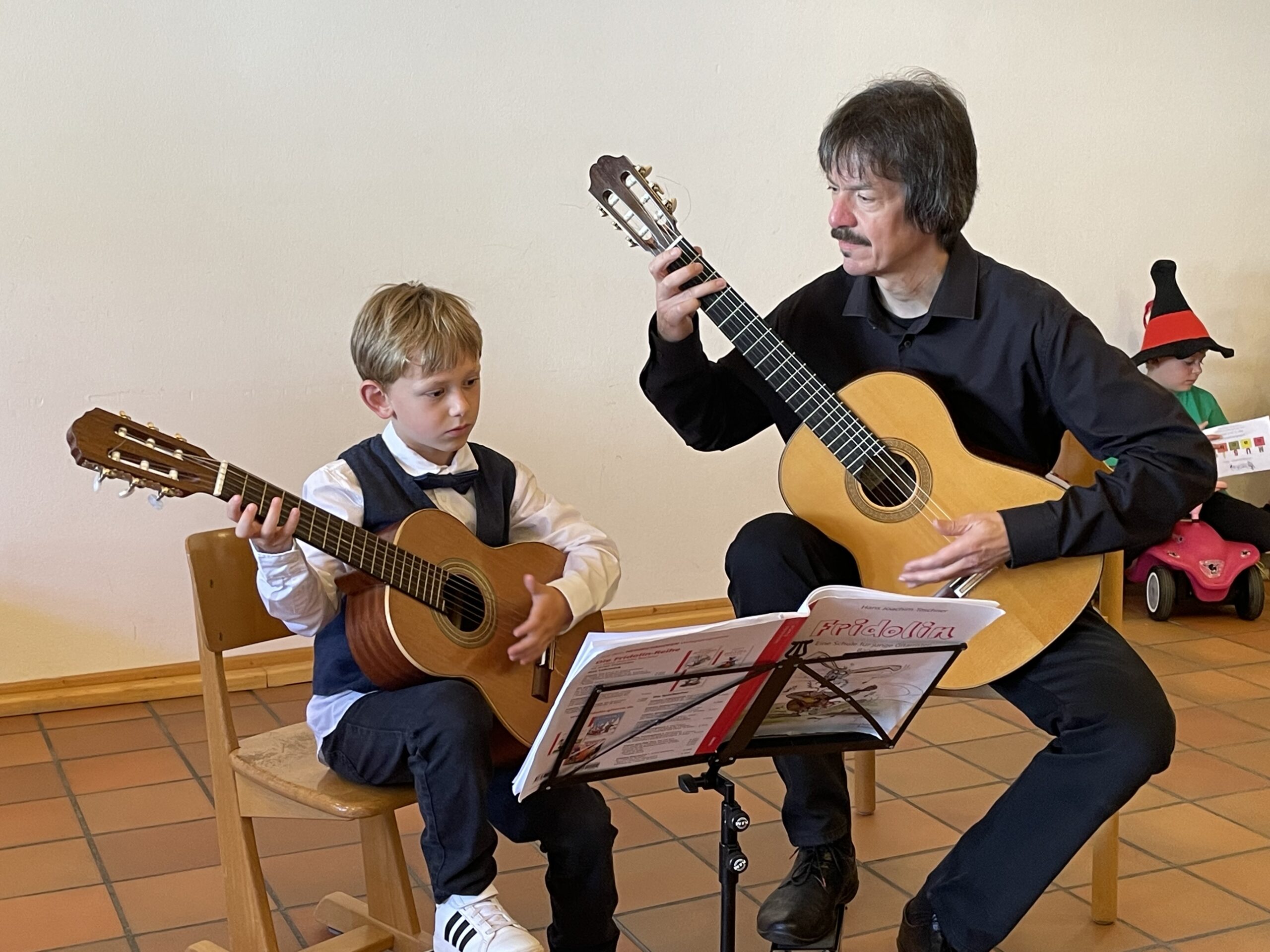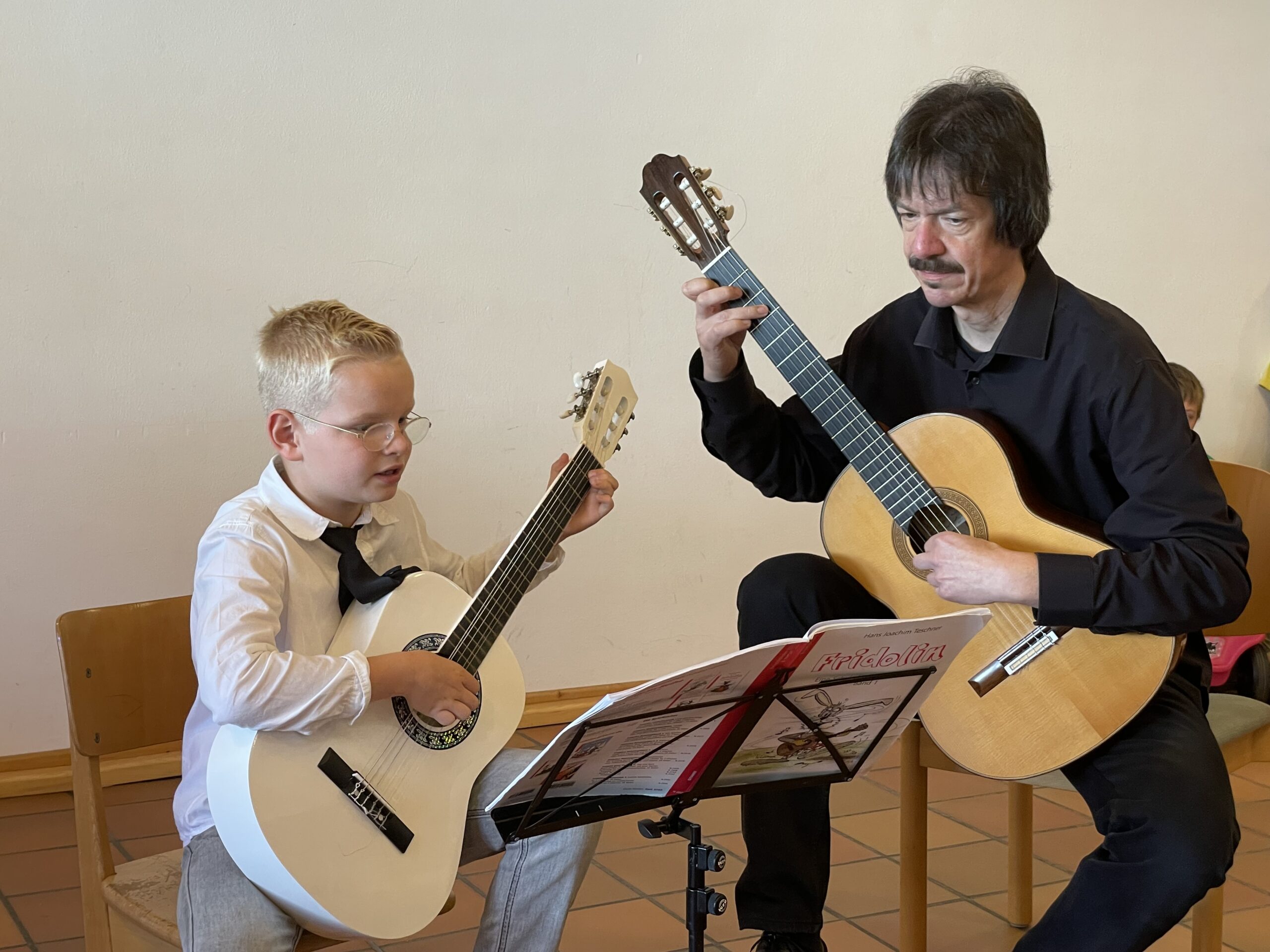 Zur Feier verdeutlichten Landrat und Schirmherr der Veranstaltung, Dr. Oliver Bär, der VHS-Geschäftsführer André Vogel und Christopher von Mammen, der Leiter der Musikschule, die Bedeutung der Zusammenarbeit. Sie bedankten sich unter anderem bei Ideengeber und „Erfinder“ der Kooperation „Musik nach 1“, dem damaliger Rektor Reiner Frank, seinem Nachfolger und weiteren Förderer des Projekts, Peter Gradel sowie bei Christine Kemnitzer, die sich als Lehrkraft der Grundschule von der ersten Stunde an als Koordinatorin mit viel Engagement in das Projekt eingebracht hat. Ebenfalls gedankt wurde Eva Gräbner, die sich als Leiterin der Musikschule bis 2021 um die Organisation der Lehrkräfte und die Finanzierung des Projekts kümmerte. Die Veranstaltung konnte schließlich bei gutem Wetter, Würstchen und erfrischenden Getränken im Garten des Hermann-Bezzel-Hauses ausklingen.
