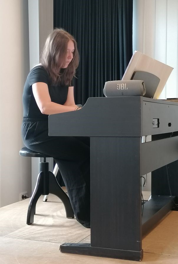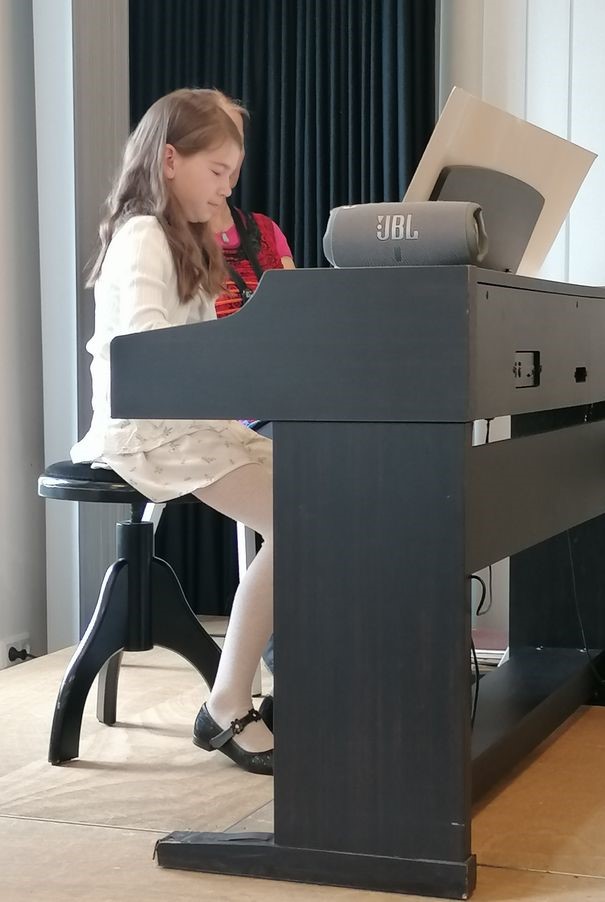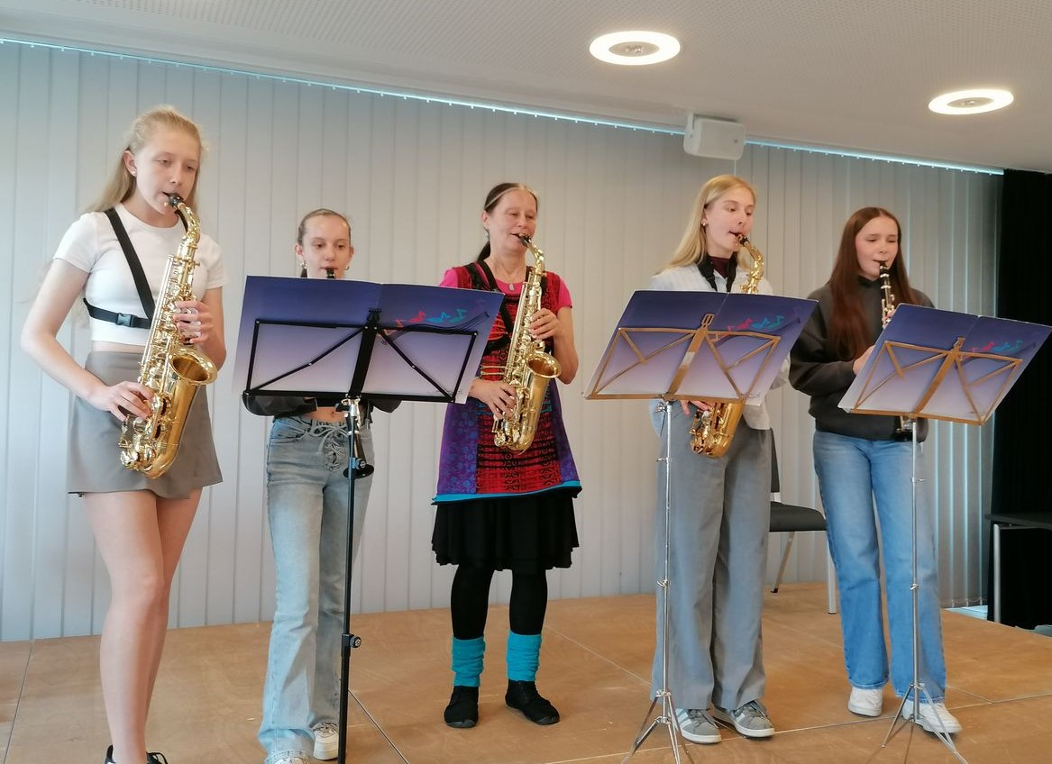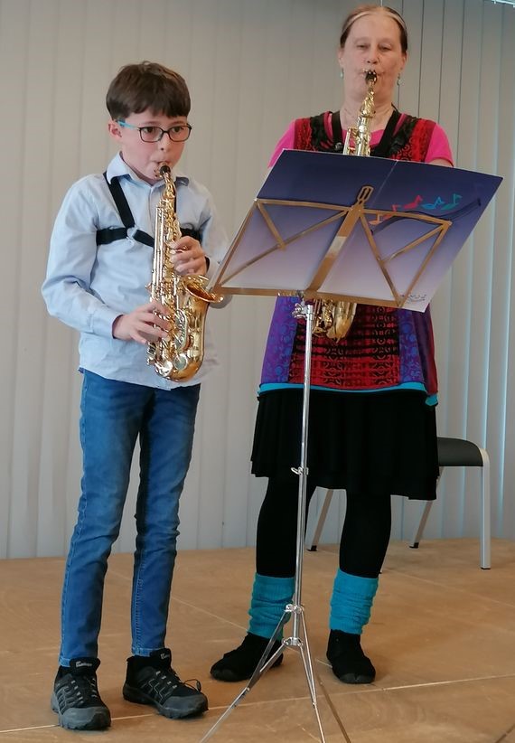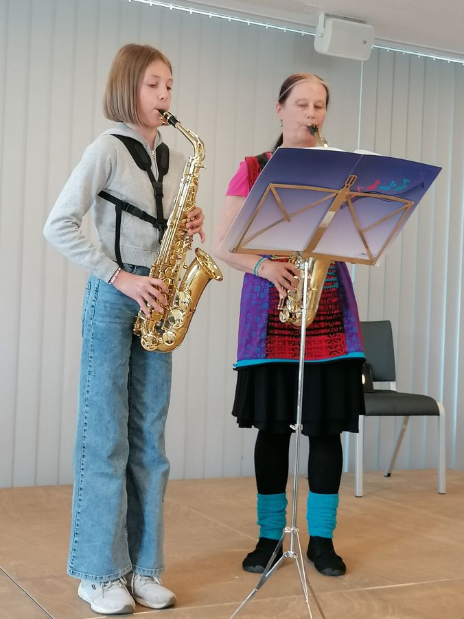 Am 18.Mai war die Musikschule des Landkreises Hof mit den Klavier-, Klarinetten- und Saxophonklassen von Birgit Vogel für ein Konzert im Philipp-Wolfrum-Haus. Viele Menschen kamen, um sich dieses anzuhören und waren so begeistert von der ansteckenden Spielfreude, dass sie sogar bei zwei Volksliedern durch Mitsingen am Konzert „teilnahmen“. Anfangs spielte die Lehrerin das Stück „Frühling, komm“ von Yumi Matsutoya am Klavier vor. Danach kamen weitere Darbietung auf dem Klavier, dem Chalumeau, dem Saxophon und der Klarinette, alleine und auch in unterschiedlichen Ensembles. Der musikalische Spannungsbogen ging von Volksliedern „Nehmt Abschied Brüder“ zu klassischen Stücken „Clair de Lune“ von Debussy, „Walzer As-Dur“ von Franz Schuberth, bis zu modernen Liedern wie „Video Games“ von Dana del Ray, „Perfect“ von Ed Sheeran und „Blues in the night“. Auch „Pippi Langstrumpf“ kam zu Besuch und so war durch die vielen unterschiedlichen Darbietungen das Vorspiel abwechslungsreich gestaltet. Zum Abschluss überzeugte ein weiteres Mal das Holzbläserensemble mit „Gentle Brass“, so dass alle beschwingt nach Hause gingen.